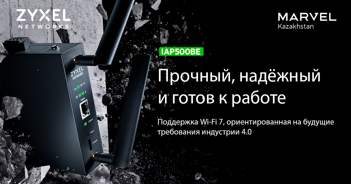 Marvel Kazakhstan представляет вам обновление по линейке промышленного оборудования Zyxel Networks. Компания представила свою первую точку доступа формата WiFi 7 для рабочих помещений сложного типа. Модель получила название BE5000 4-Stream WiFi 7 Dual-Radio NebulaFlex Pro Industrial Access Point IAP500BE.
